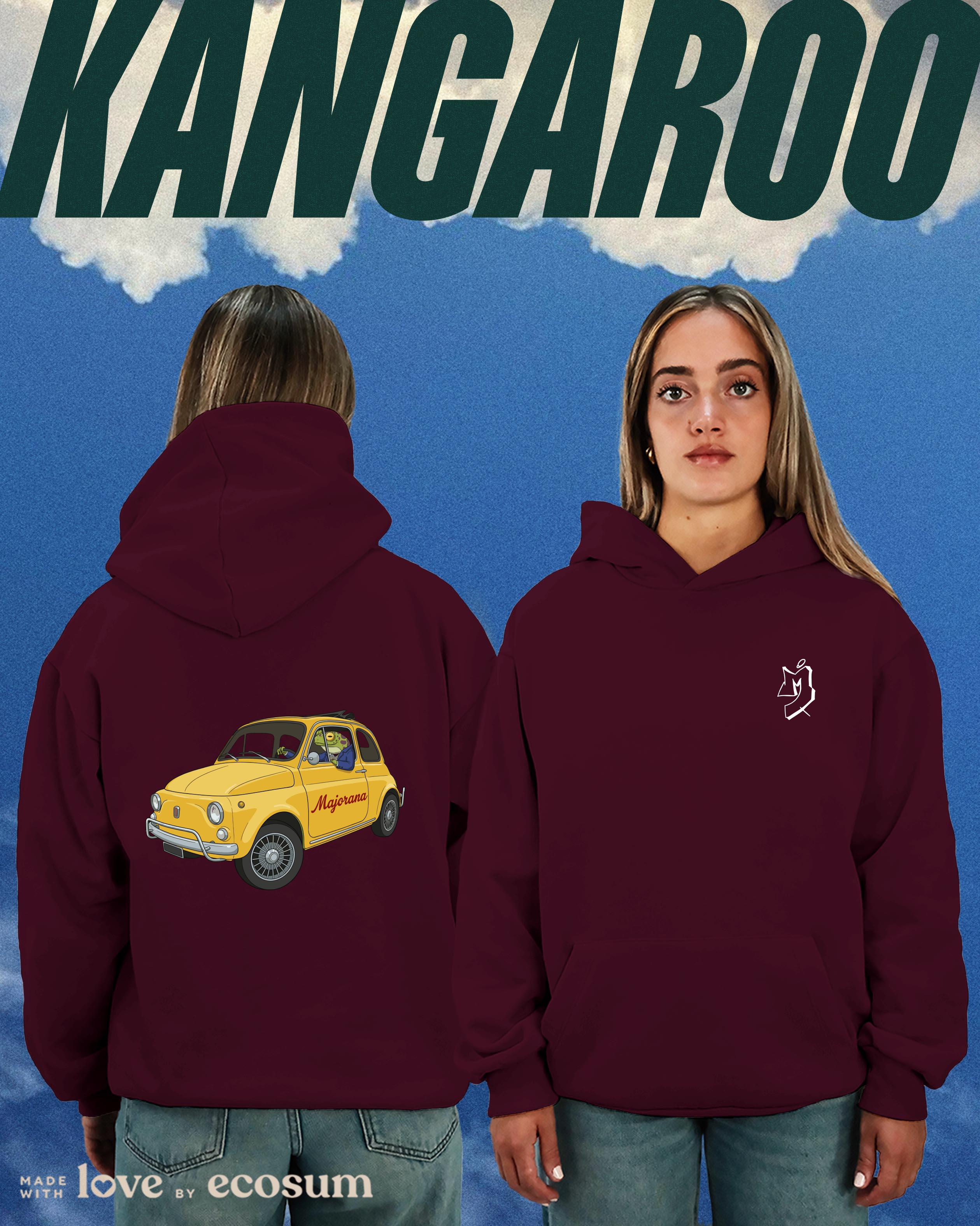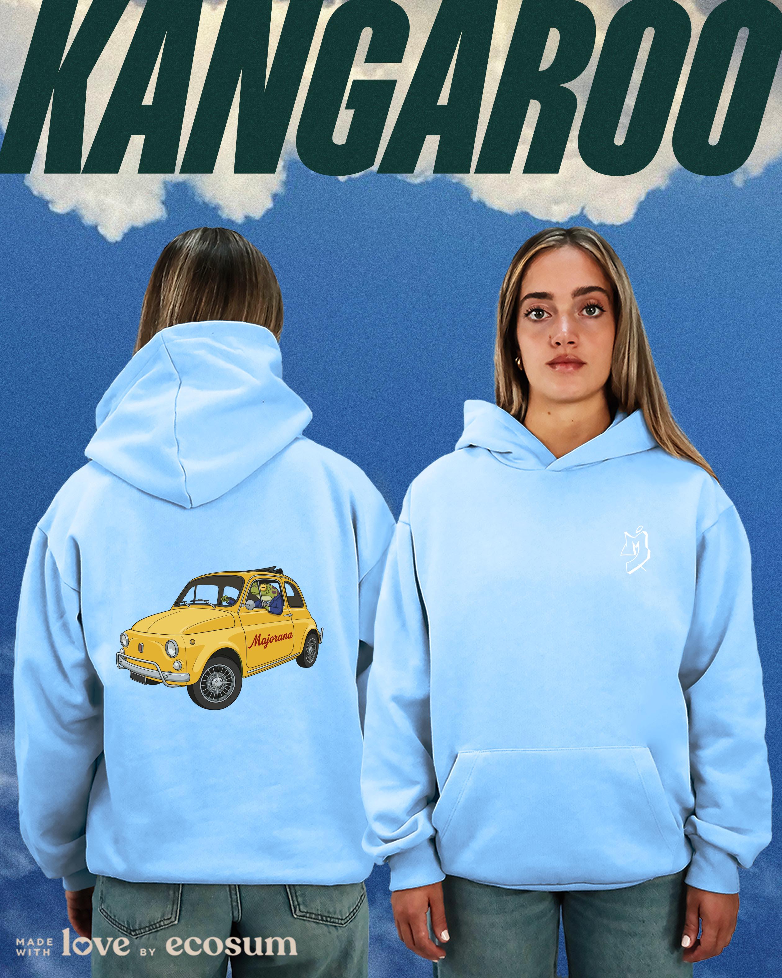 Hoodie iconica con cappuccio e tascone, studiata e prodotta in Italia con filati riciclati.