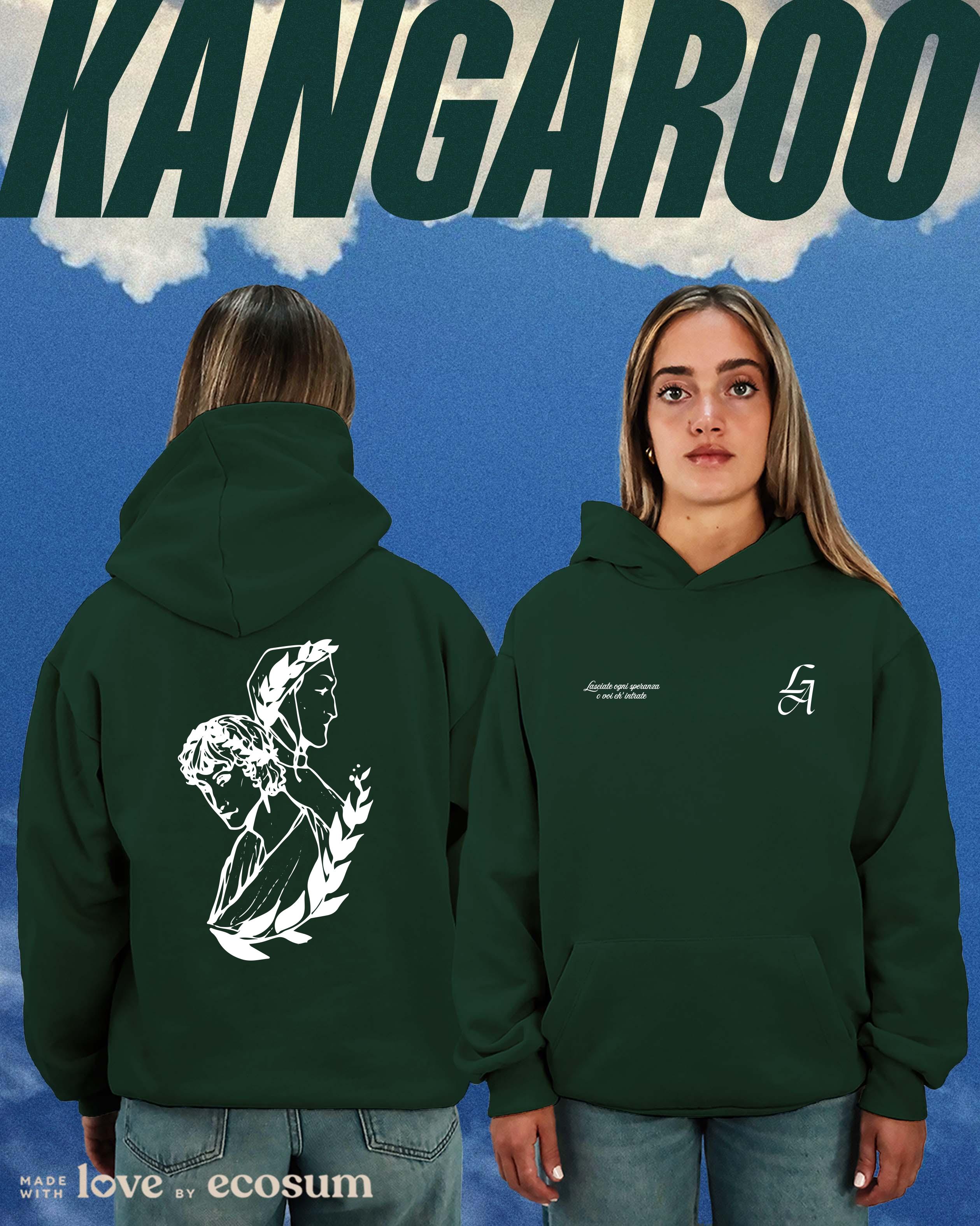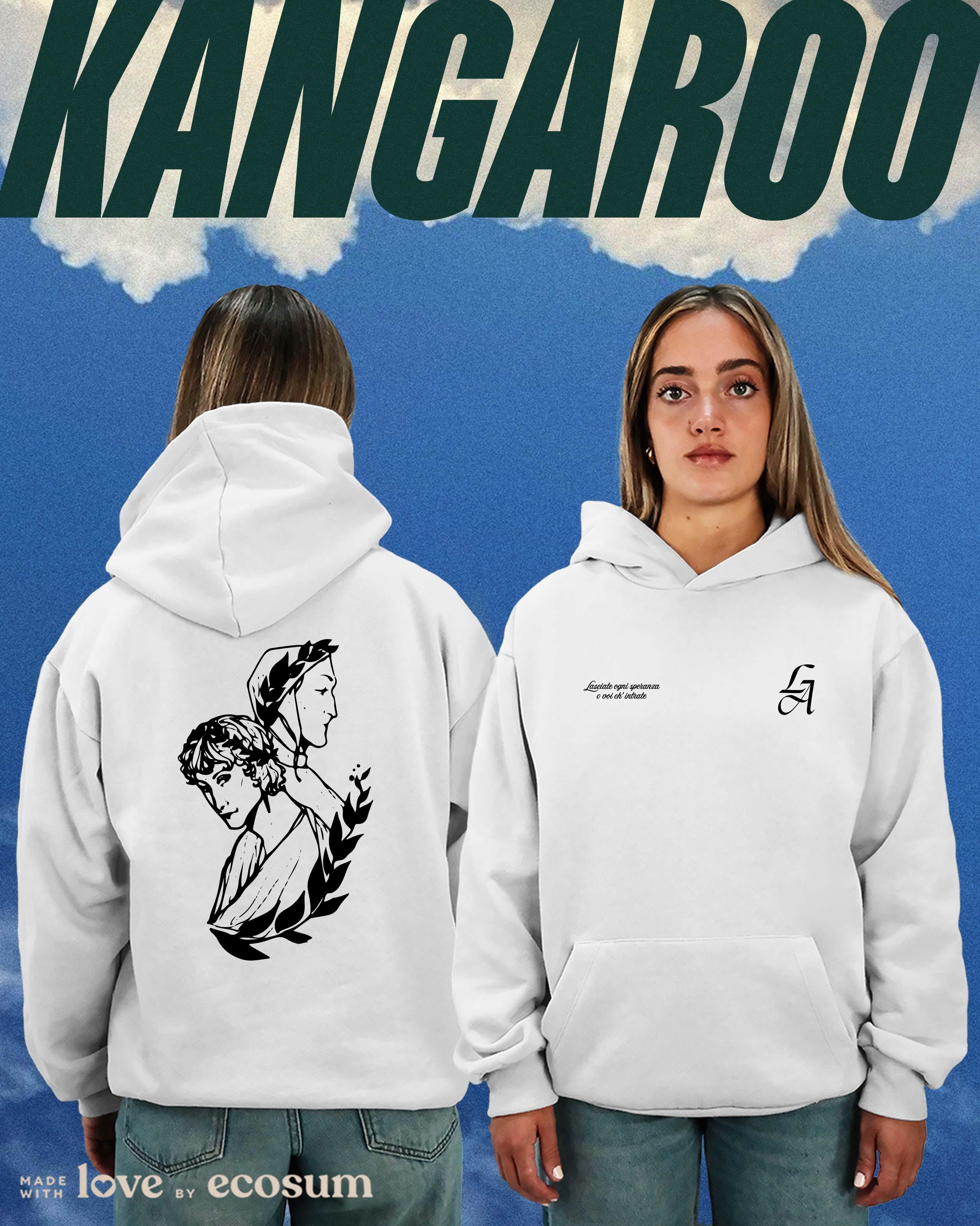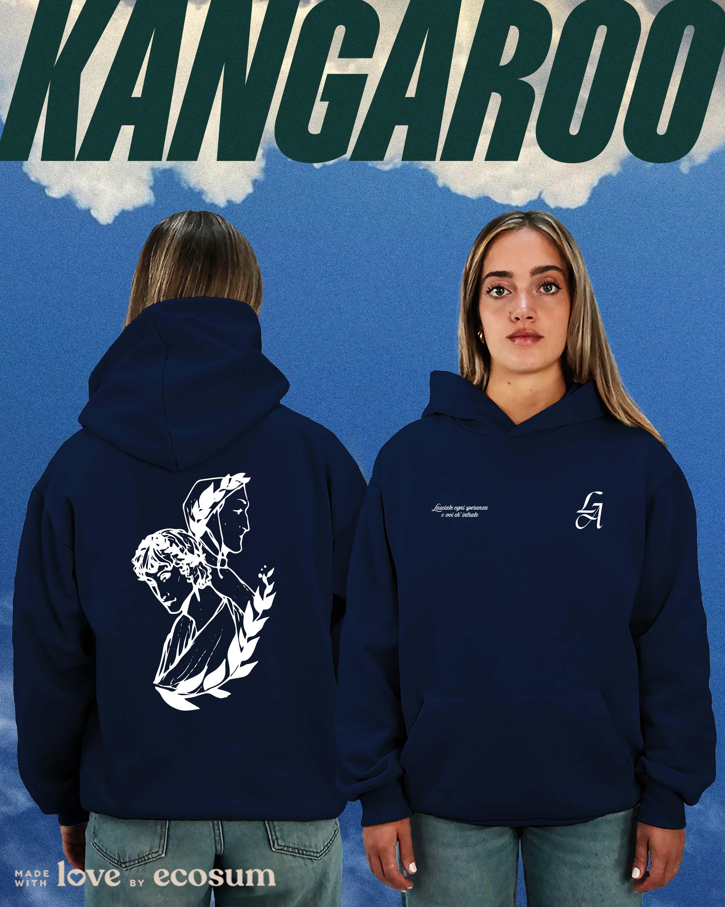 Hoodie iconica con cappuccio e tascone, studiata e prodotta in Italia con filati riciclati.